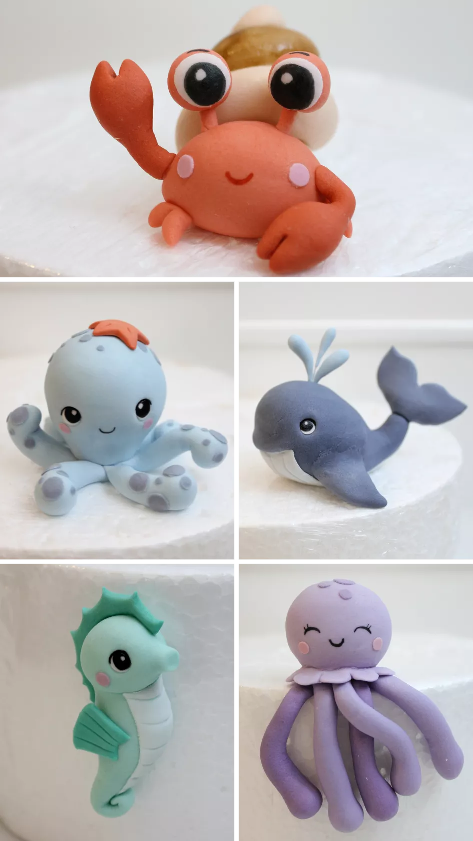 ➜ MÓDULO 11 - MODELAGEM ANIMAIS DO FUNDO DO MAR: Passo a passo da modelagem: baleia, cavalo marinho, caranguejo/siri, água viva e polvo.