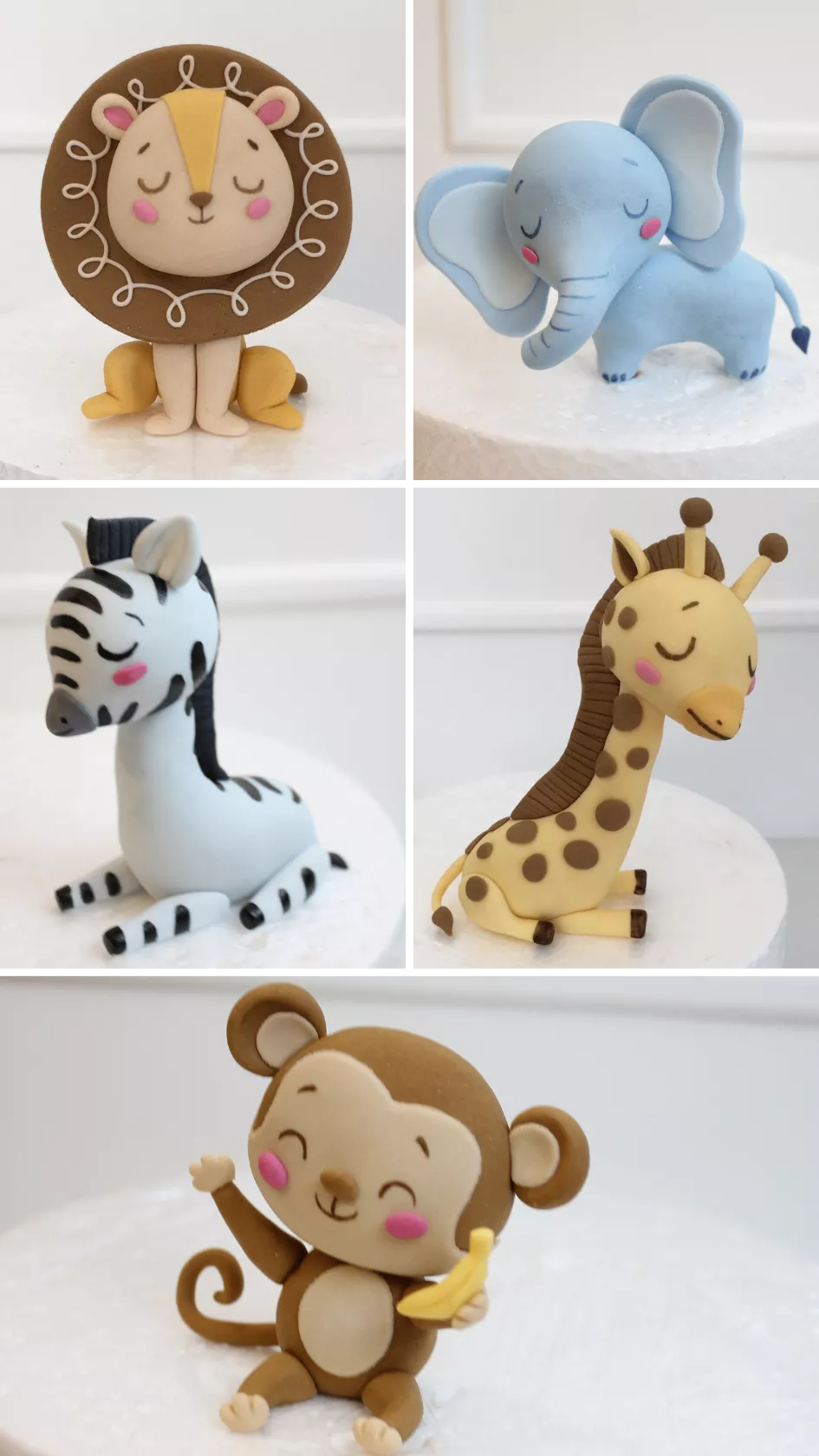 ➜ MÓDULO 8 - MODELAGEM ANIMAIS DA SELVA: Passo a passo da modelagem: leão, girafa, macaco, elefante e zebra.