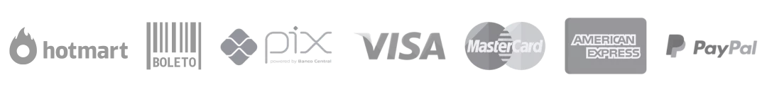Quais são as formas de pagamento? Cartão de crédito, PIX, PayPal, saldo da Hotmart, GooglePay, SamsungPay e Boleto Bancário.