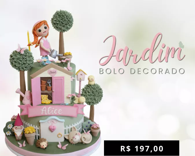 Aprenda diversas técnicas de modelagem e encante seus clientes com um lindo Bolo Decorado no tema Jardim!